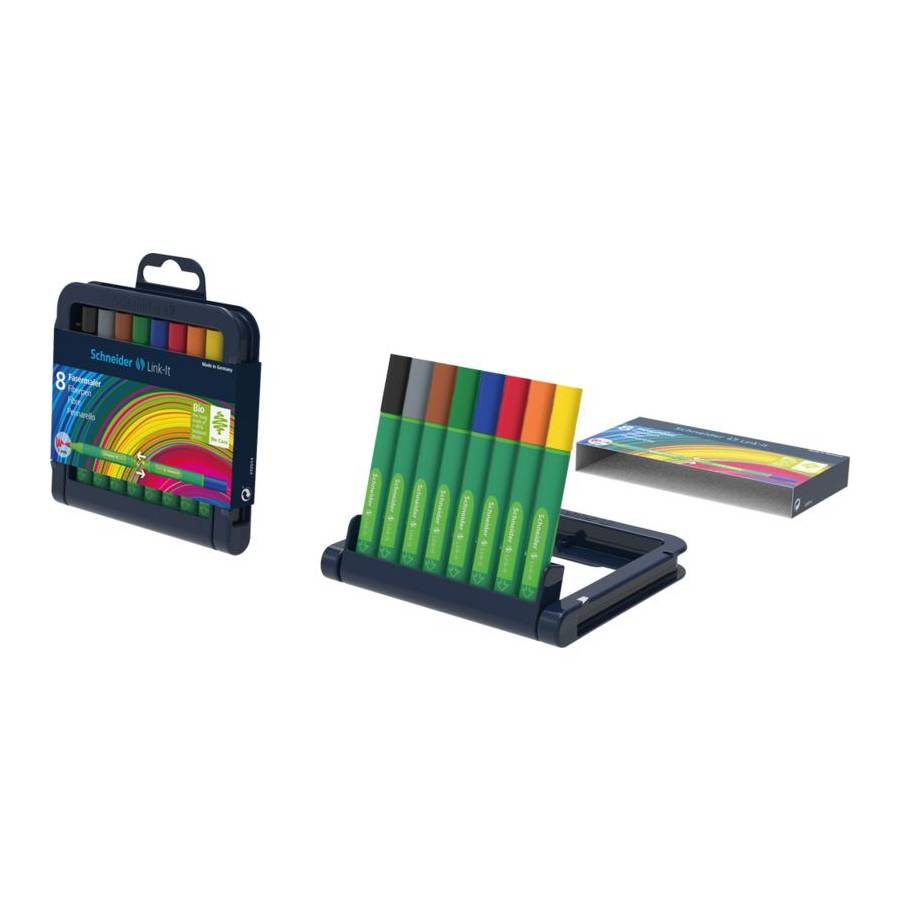 Voir plusLe premier fibre qui se combine à volonté grâce à un système intelligent. Récompensé par l'écolabel Ange Bleu le plus connu au monde pour sa production particulièrement économe en ressources et respectueuse de l'environnement. On ne combine pas seulement ses couleurs favorites, mais aussi différents système d'écriture. L' étui chevalet box a une longue durée et peut être utilisé comme porte-stylo. Il est fabriqué aussi à partir de déchets de la transformation des matières plastiques interne. Couleurs: Sapphire-Black, Silver-Grey, Mahogany-Brown, Blackforest-Green, Lapis-Blue, Romantic-Red, Tango-Orange, Golden-Yellow. Épaisseur de trait 1,0 mm. Le corps triangulaire ergonomique caoutchouté permet une prise en main sûre et décontractée, même si il est utilisé en stylo individuel avec le capuchon réversible, il ne roule pas sur le bureau. Le corps est fabriqué à 88 % en bio-plastique. Disponible aussi en fineliner. Le Link-It est fabriqué avec un impact neutre en CO2.