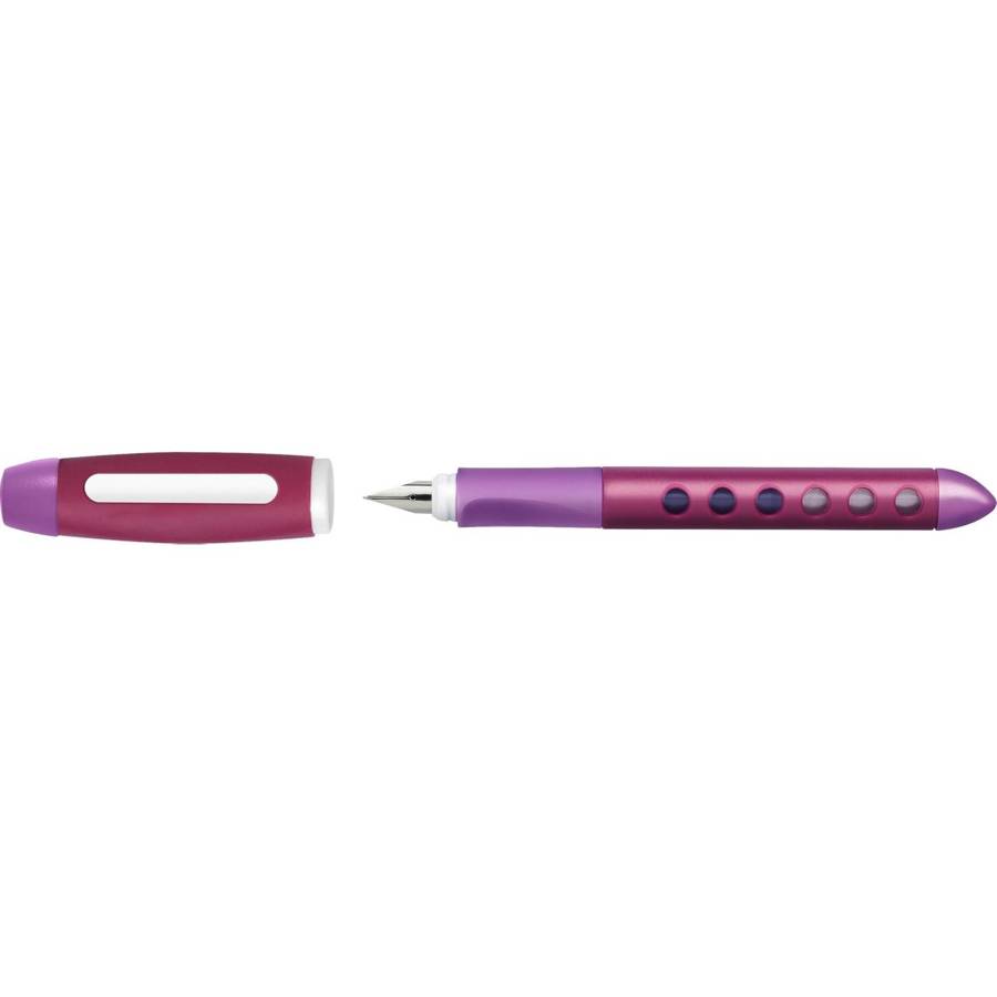 Stylo plume éducatif Scribolino • plume en iridium pour une écriture souple sous forte pression • zone de préhension souple et ergonomique pour écrire sans se fatiguer • capuchon et corps munis d'un système empêchant le stylo de rouler et tomber • capuchon avec espace pour inscrire le nom et boucle pour attacher un objet • corps avec fenêtre de contrôle du niveau d'encre pour 2 cartouches (149848)
