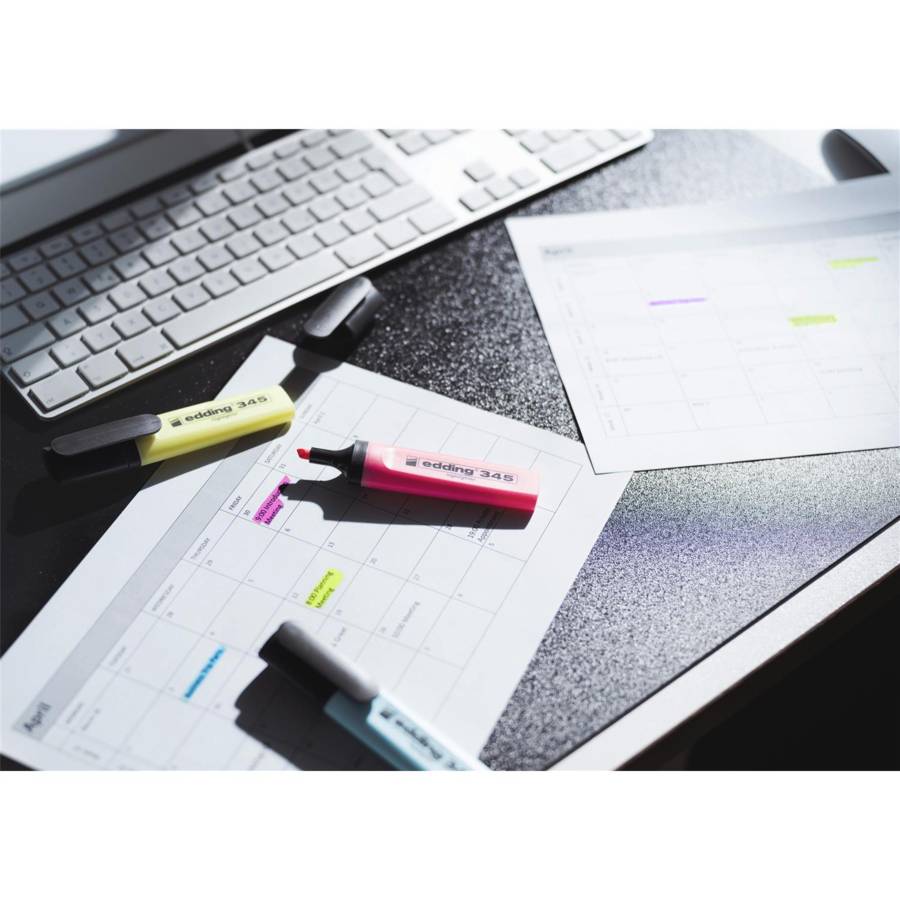 Que ce soit sur un calendrier chez soi ou au bureau pour faire ressortir des passages de texte ou des notes importantes, le surligneurs edding 345 a un impact brillant sur tout ce qu'il marque
