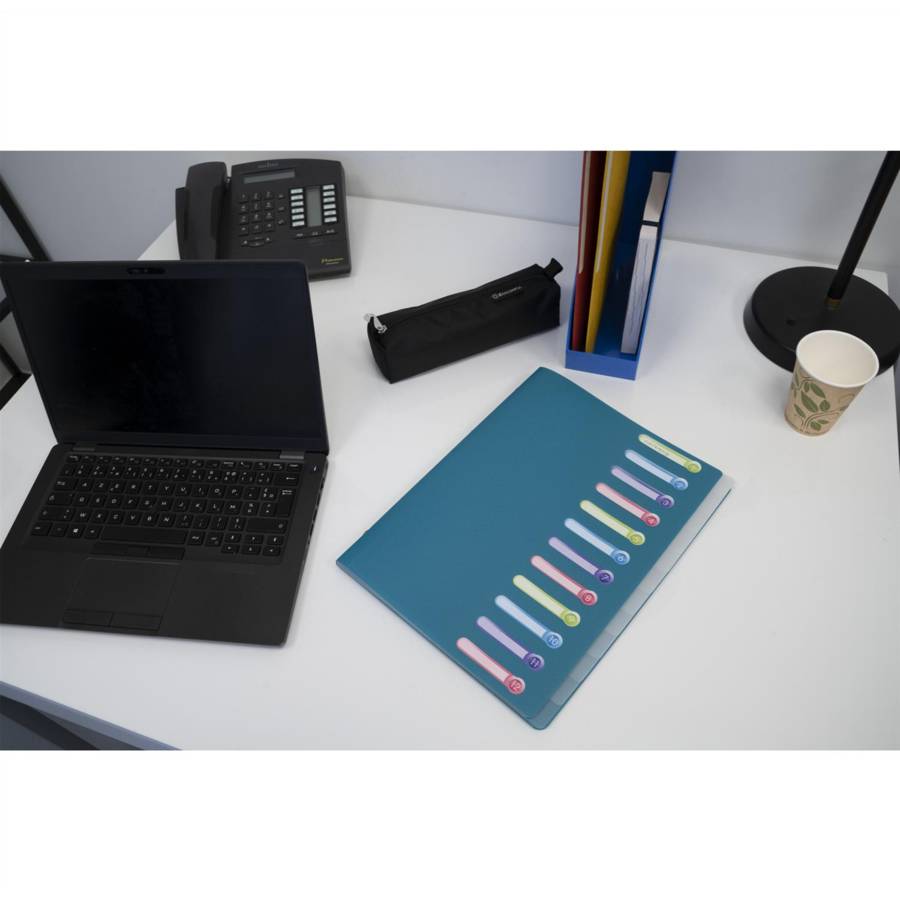 Trieur polypropylène Exacompta 55981E 3 rabats 12 compartiments OPAK En polypropylène souple structuré mat, antitache et anti-rayure, le trieur Opak est une produit du quotidien qui convient aussi bien aux scolaires qu'aux professionnels. Idéal pour classer ou transporter des documents perforés ou non perforés. Personnalisation facilitée des compartiments grâce aux fenêtres découpées dans la couverture et à la pochette A4 située en 2e de couverture.* Trieur muni de 3 rabats en 3e de couverture, permettant le rangement de documents. Fermeture par élastiques pour un transport sécurisé.