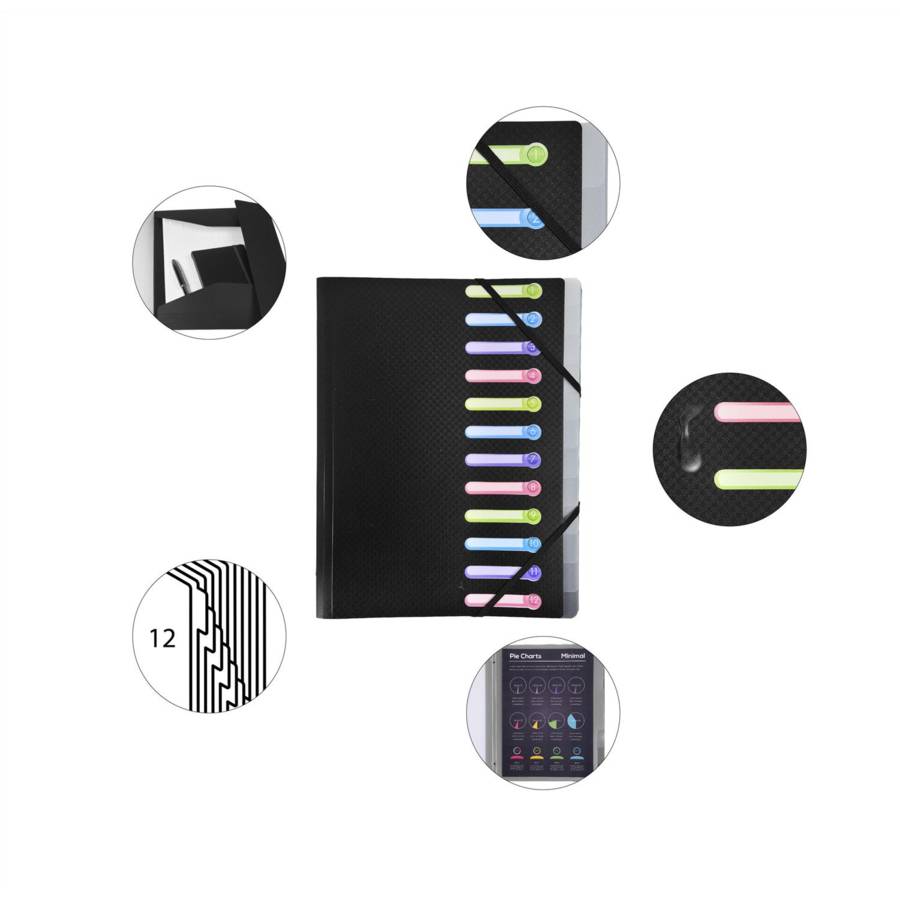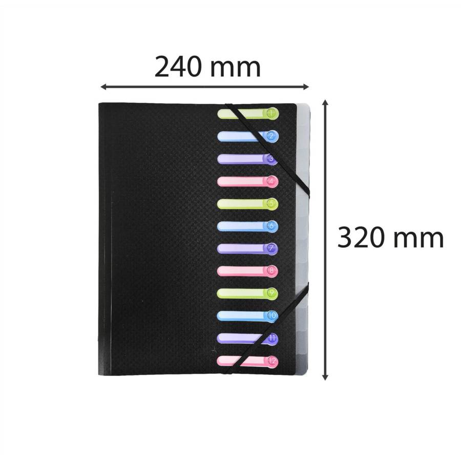 Trieur polypropylène 3 rabats 12 compartiments OPAK - Noir