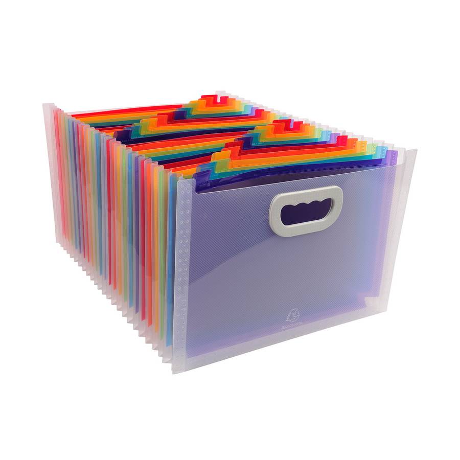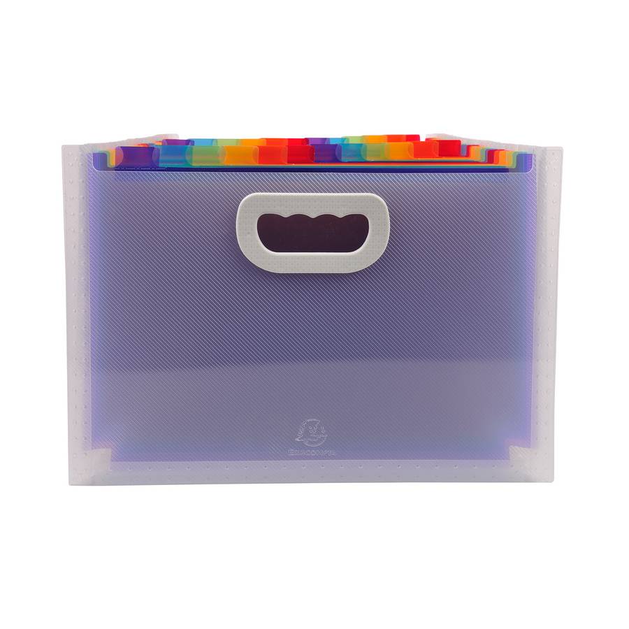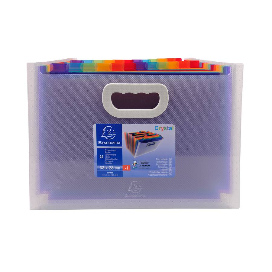Voir plusEXACOMPTA Le trieur Maxi permet de classer dans 24 compartiments tous les documents essentiels, que ce soit par rubrique ou par ordre alphabét ique. Les onglets sont équipés de porte-étiquette pour identifier facilement chaque compartiment. Deux planches d'étiquettes sont fournies, elles sont imprimables sur l'application Kreaman® du site www.exacompta.com. Avec 2 porte-étiquettes sur la face avant du trieur pour insérer des cartes de visite ou identifier le contenu. Couleur(s) : Cristal Gamme : Crystal Couleur matiere interieur : Multicolore Matière : PP Épaisseur : 10/10e Format à classer : A4 maxi 24x32cm Type de produit : Trieur Nombre de compartiments : 24 Matière intérieure : PP Épaisseur matière intérieur : 15/100e Dos extensible : extensible Porte étiquette : Oui Capacité (feuillets 80gr.) : 800 Format extérieur : 33x23,5x25cm