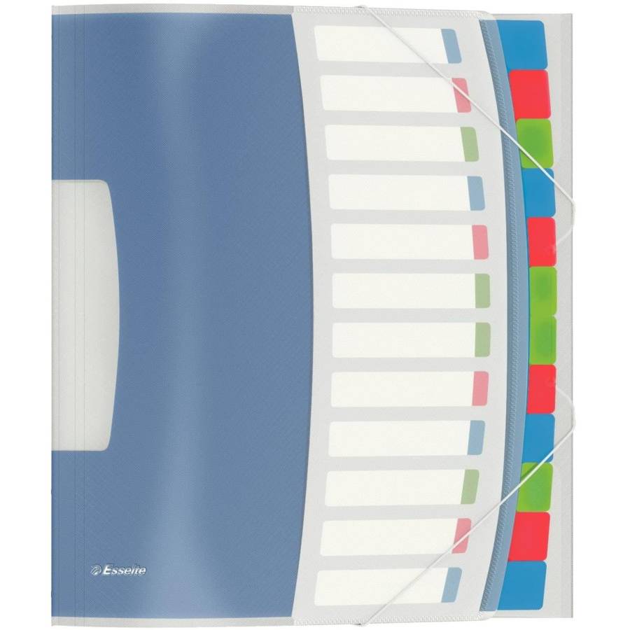 Esselte Trieur VIVIDA, A4, PP, 12 touches, multicolore pochette de protection 3 rabats au dos, avec élastique, intercalaires et onglets colorés, index amovible, pochette pour CD à l'arrière dimensions: (B)266 x (T)20 x (H)320 mm (624030)