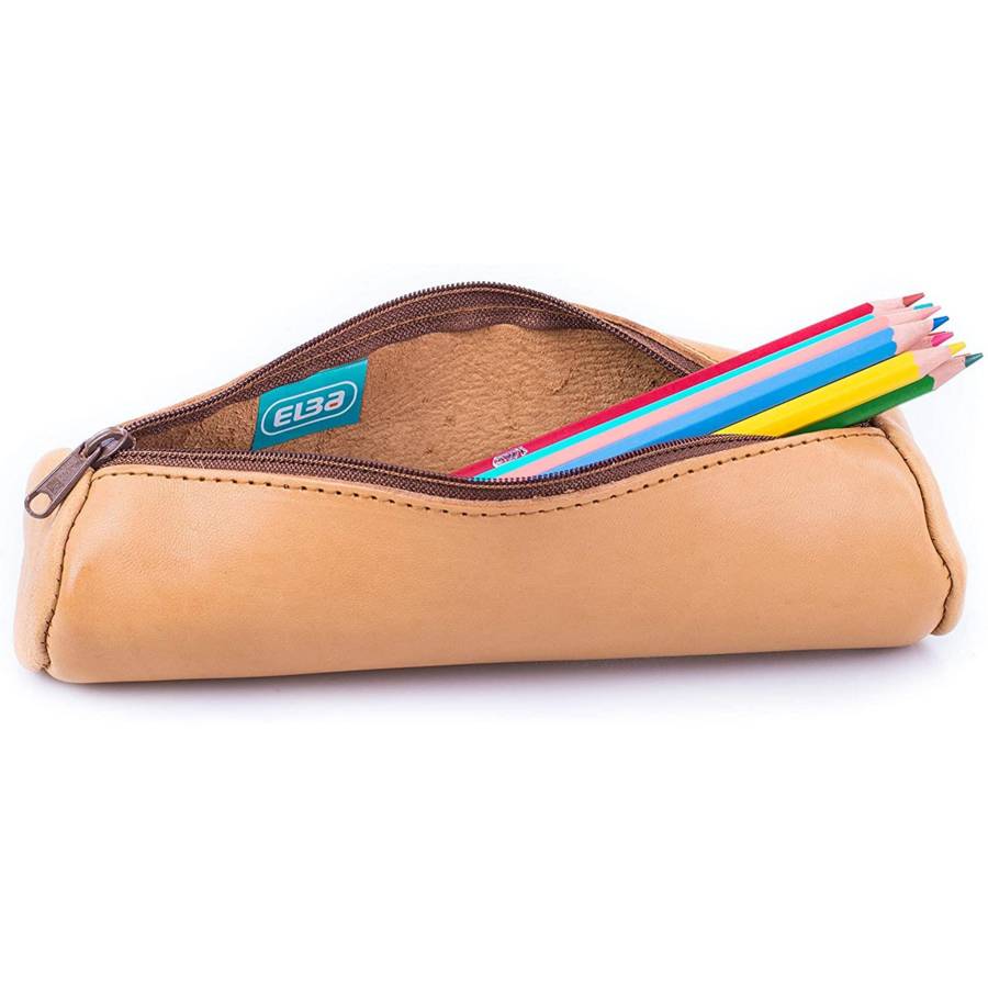 Elba FOURRE-TOUT ROND HORS LICENCE CUIR NATUREL BEIGE Dimensions : Cette trousse en cuir est au format Cuir : Cette trousse a été créée à partir de cuir ovin pleine fleur (qualité supérieure), Les peaux utilisées par ELBA sont rigoureusement sélectionnées pour leur grain, leur souplesse et leur solidité Tannage : Les fourres-tout ELBA respectent l'environnement, Le tannage des peaux est végétal Capacité : Dans cette trousse en cuir, vous pourrez facilement y loger une vingtaine de stylos ainsi qu'un double décimètre Identification : une étiquette porte-nom est présente à l'intérieur de cette trousse