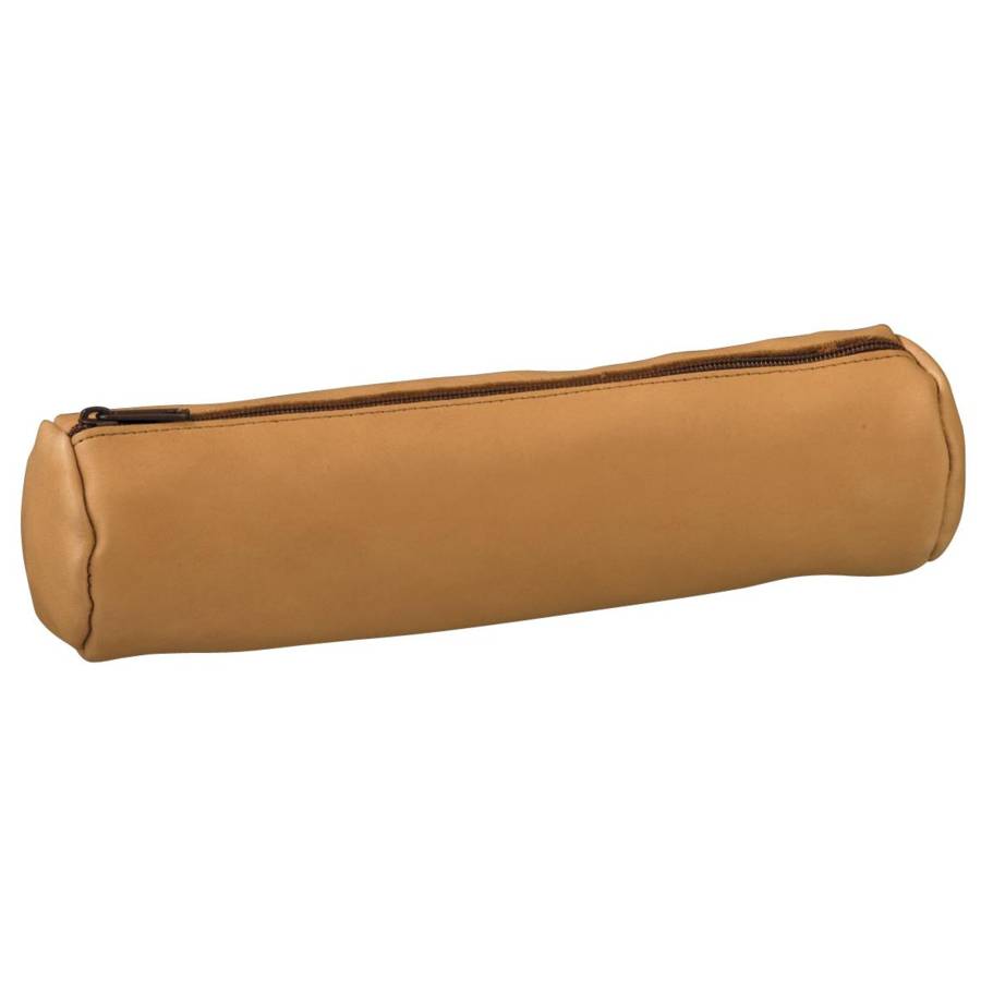 Trousse Fourre tout Rond Cuir Naturel 21 cm D 6cm Beige