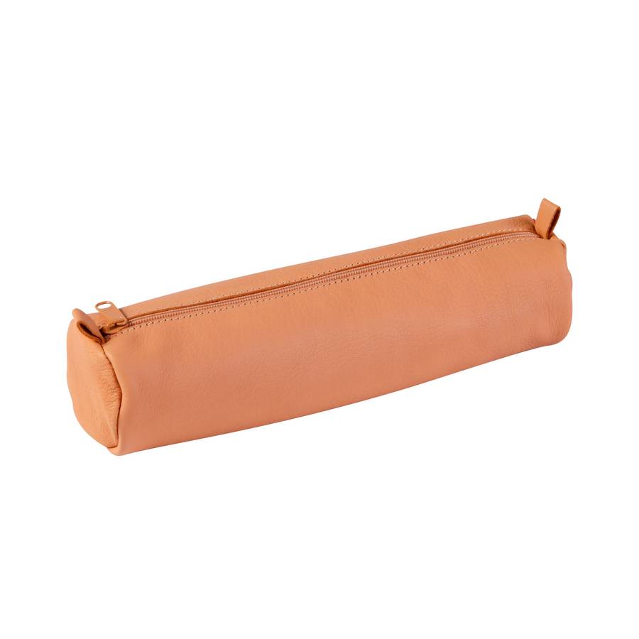 CUIR NATUREL Trousse ronde Ø5,5x22 cm Véritable cuir d'agneau - cuir souple et lisse Qualité supérieure Tannage végétal Tirette beige en métal