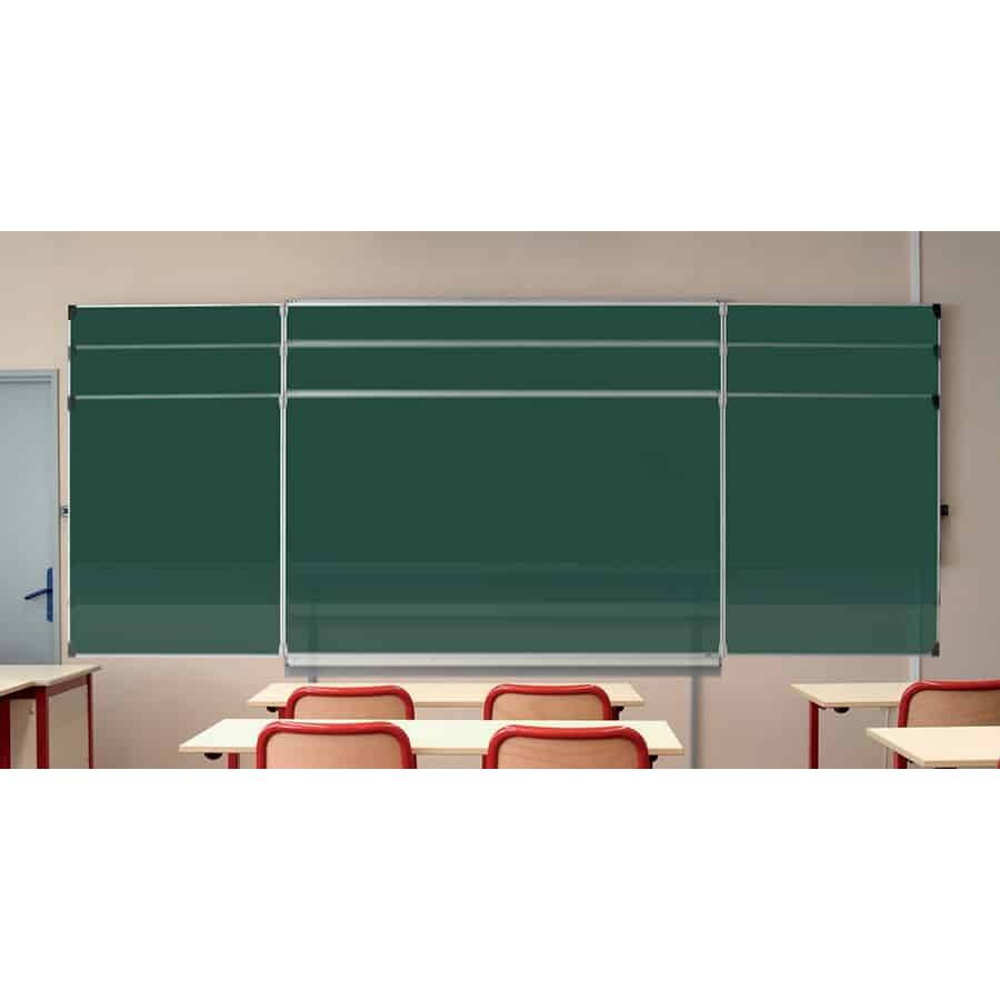 Mécanisme à poulies et contrepoids s'adaptant sur les tableaux simples et triptyques Ulmann de 100 x 200 cm et 120 x 200 cm. Course de 45 cm, par manoeuvre manuelle ou électrique. Le châssis coulissant ne dépasse pas la surface du tableau, pour un meilleur confort d'utilisation.