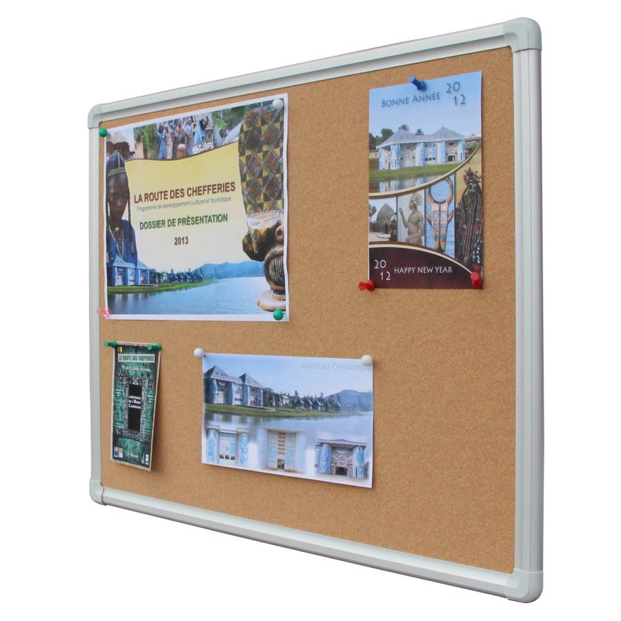 Surface en liège idéal pour punaiser, 5 formats conçus pour la bureautique, encadrement en aluminium anodisé, angles en plastique injecté.