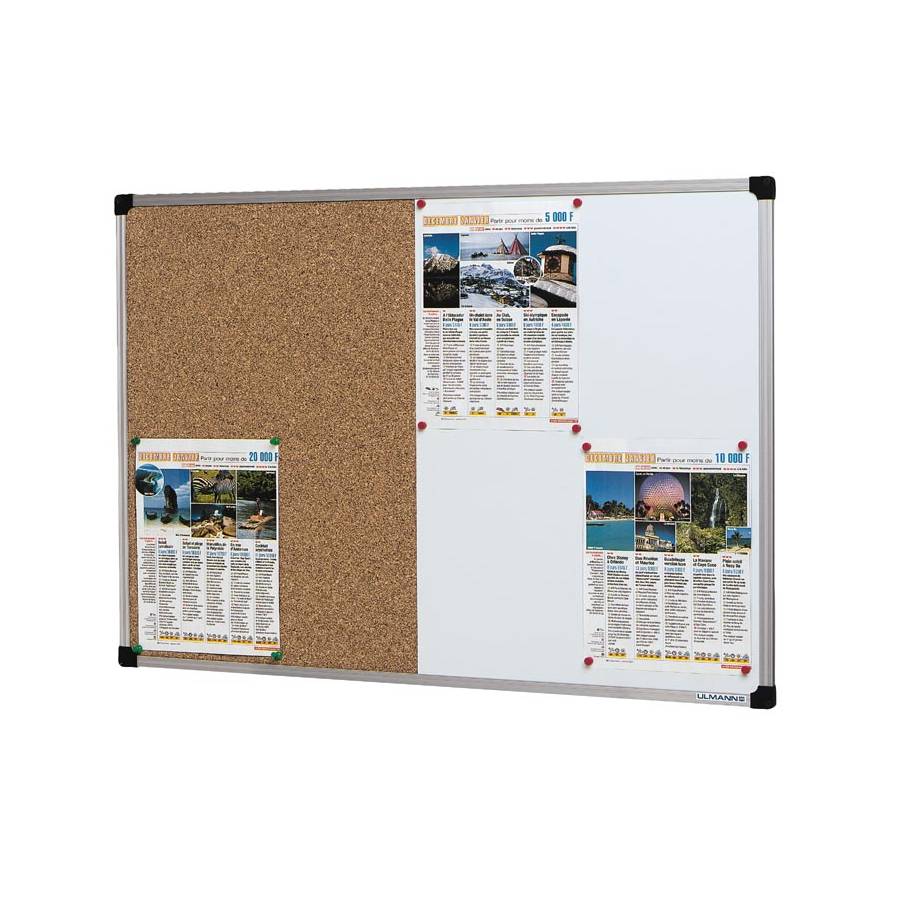 Surface bivalente : blanche émaillée pour feutre effaçable à sec et Liège uni pour punaisage