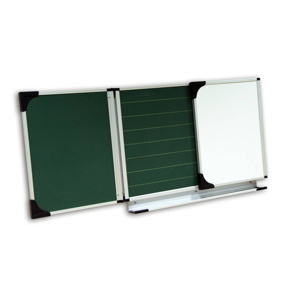 - Écriture à la craie (surface verte) et au marqueur effaçable à sec (surface blanche)