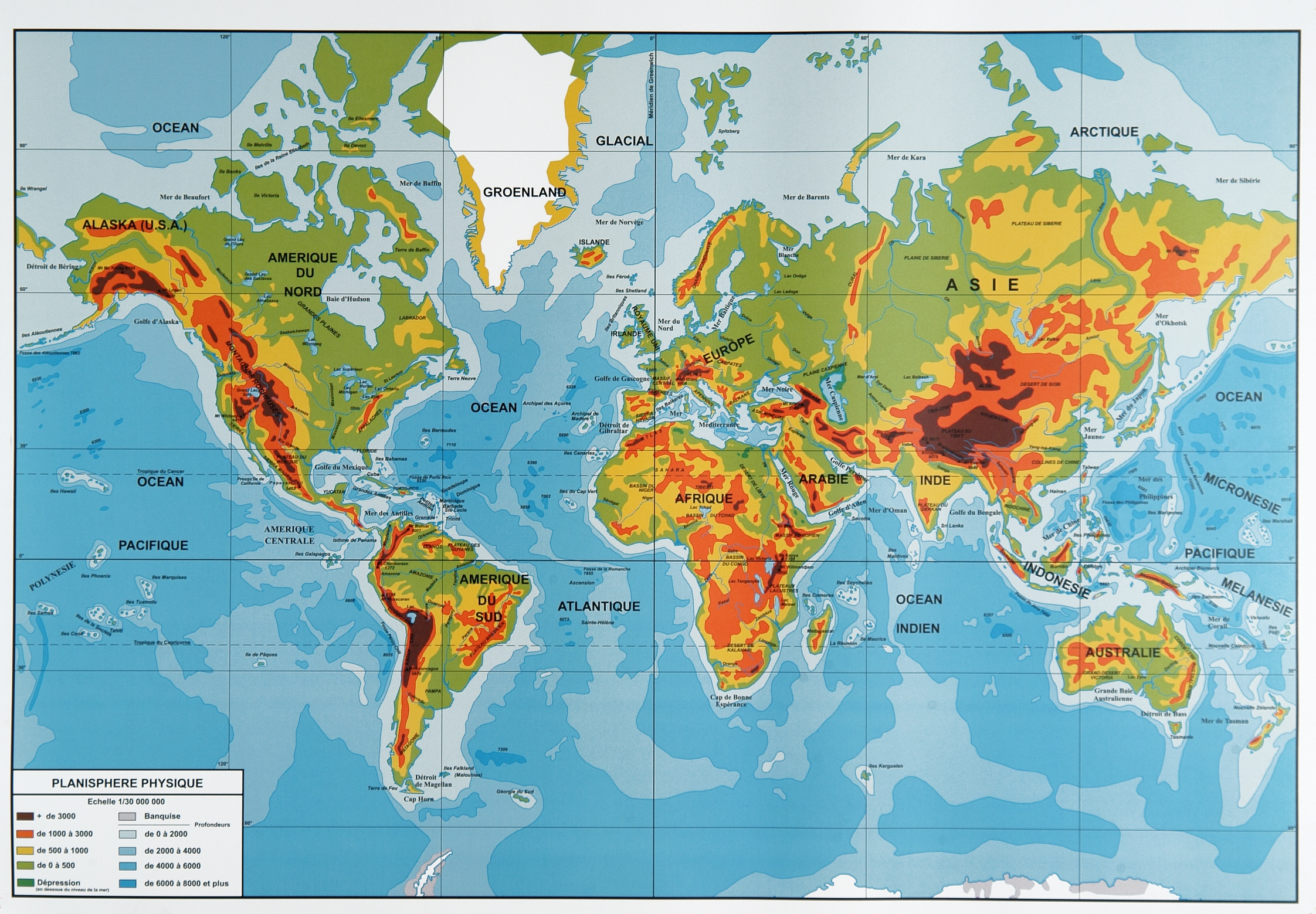 Planisphère géographique physique et politique | Produit éducatif pour collectivité