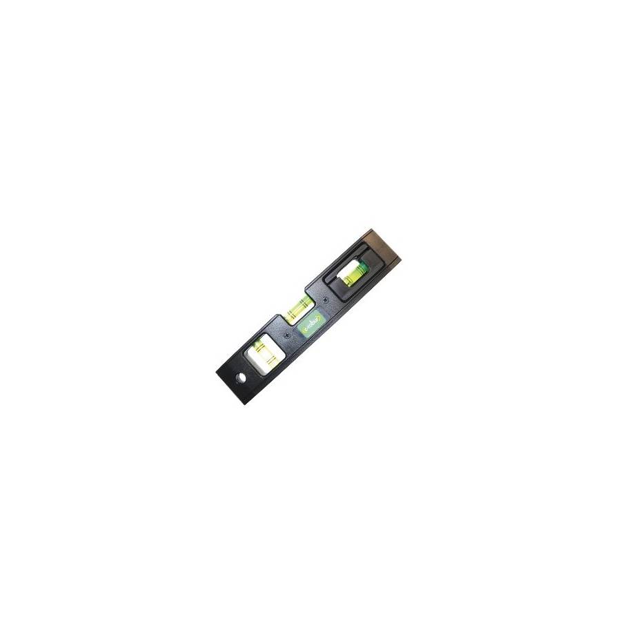 Niveau magnétique E-robur, en plastique ABS, à fioles horizontale et verticale. Une des fioles est intégrée dans une partie détachable, avec embase magnétique et rainure spéciale pour fils.
