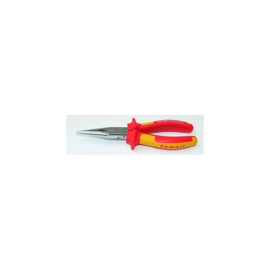 Pince à becs 1/2 ronds isolée 1 000V Fumasi. Cette pince est idéale pour des travaux d'électricité avec son manche confortable assurant une bonne prise en main.