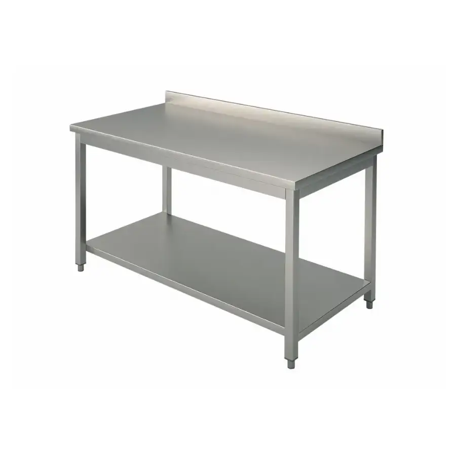 Table inox - Avec étagère basse, Avec dosseret - TBLLLP70EtagDossPied